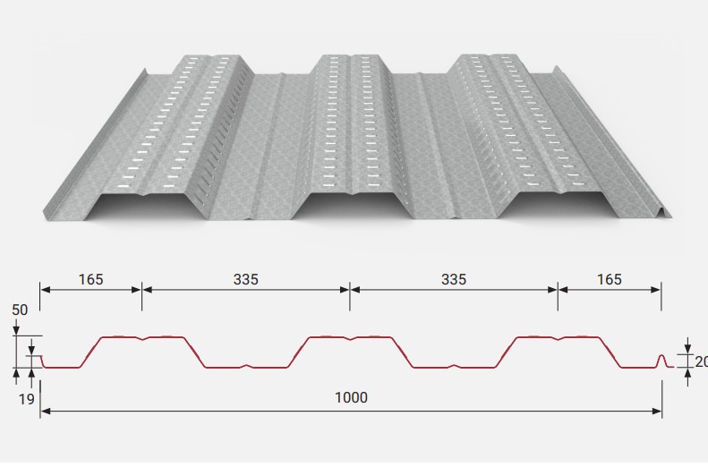 Tôn Trải Sàn 3 Sóng H50-W1000